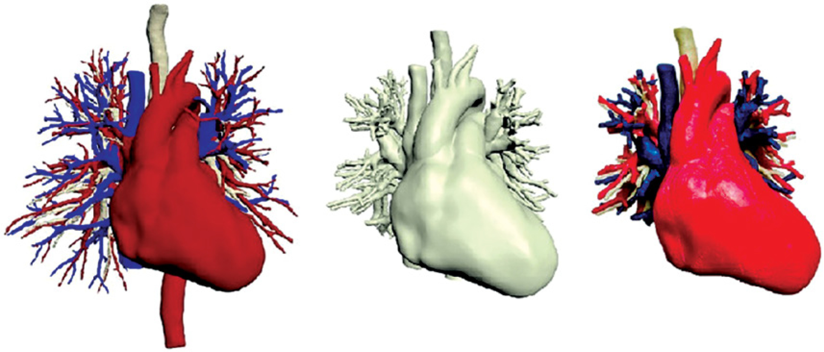 The 3D models combined into the final 3D anatomical model of the heart, bronchi, arteries, and pulmonary veins