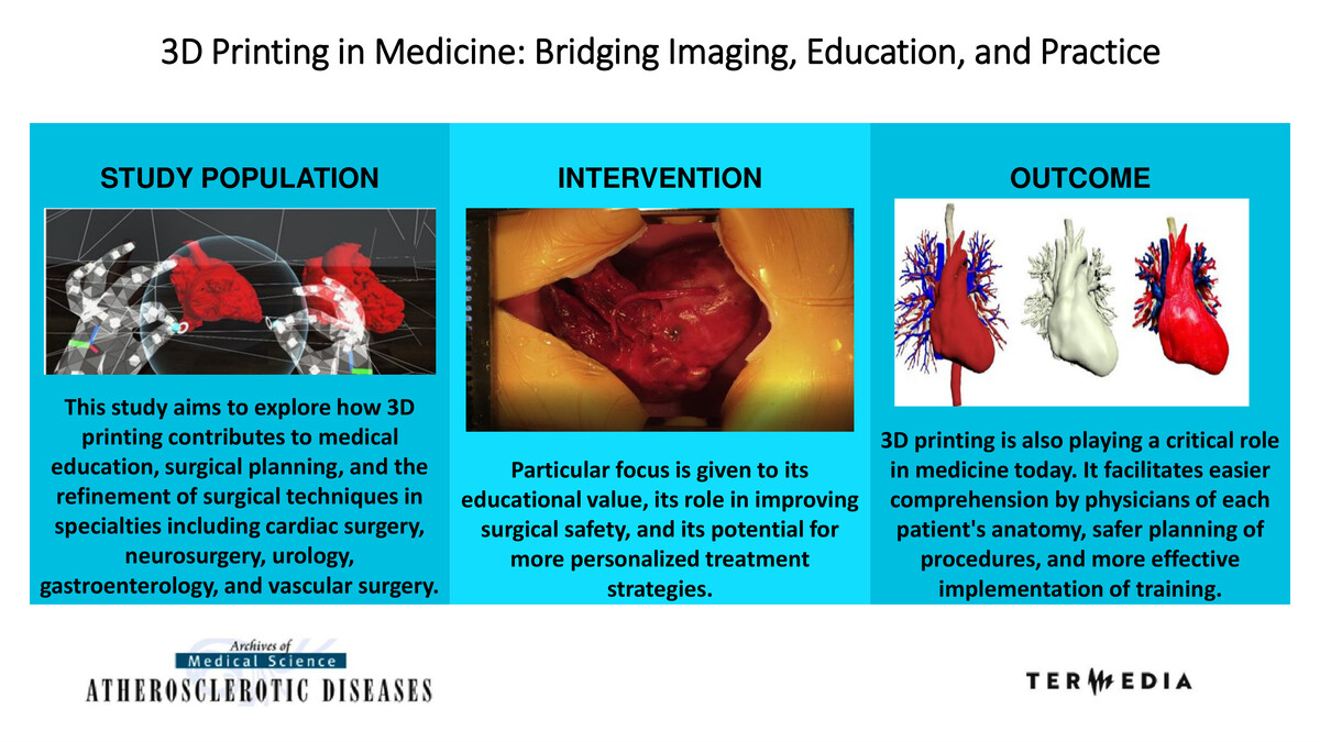 This study aims to explore how 3D printing contributes to medical education, surgical planning, and the refinement of surgical techniques in specialties including cardiac surgery, neurosurgery, urology, gastroenterology, and vascular surgery. Particular focus is given to its educational value, its role in improving surgical safety, and its potential for more personalized treatment strategies.