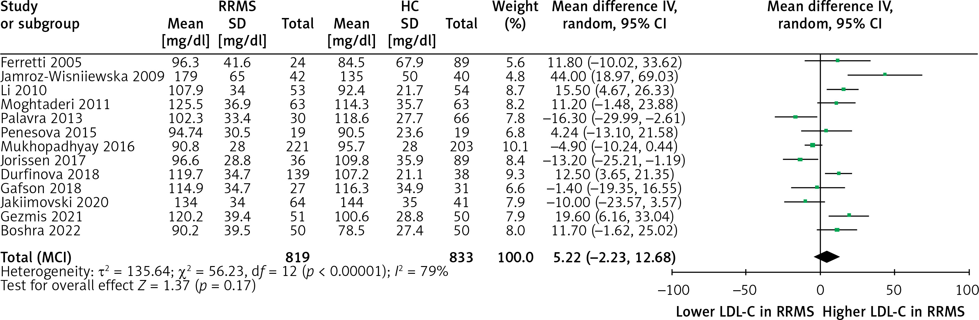 Concerning the study by Jamroz-Wisniewska et al. [12], lipid profile values used in the meta-analysis referred to RRMS patients in remission.
