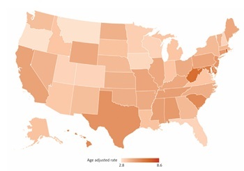 Among the different states, California had the maximum number of deaths, estimated to be as high as 4,632, followed by Texas and Florida. The lowest rates were seen in Alaska, Wyoming, and Vermont.