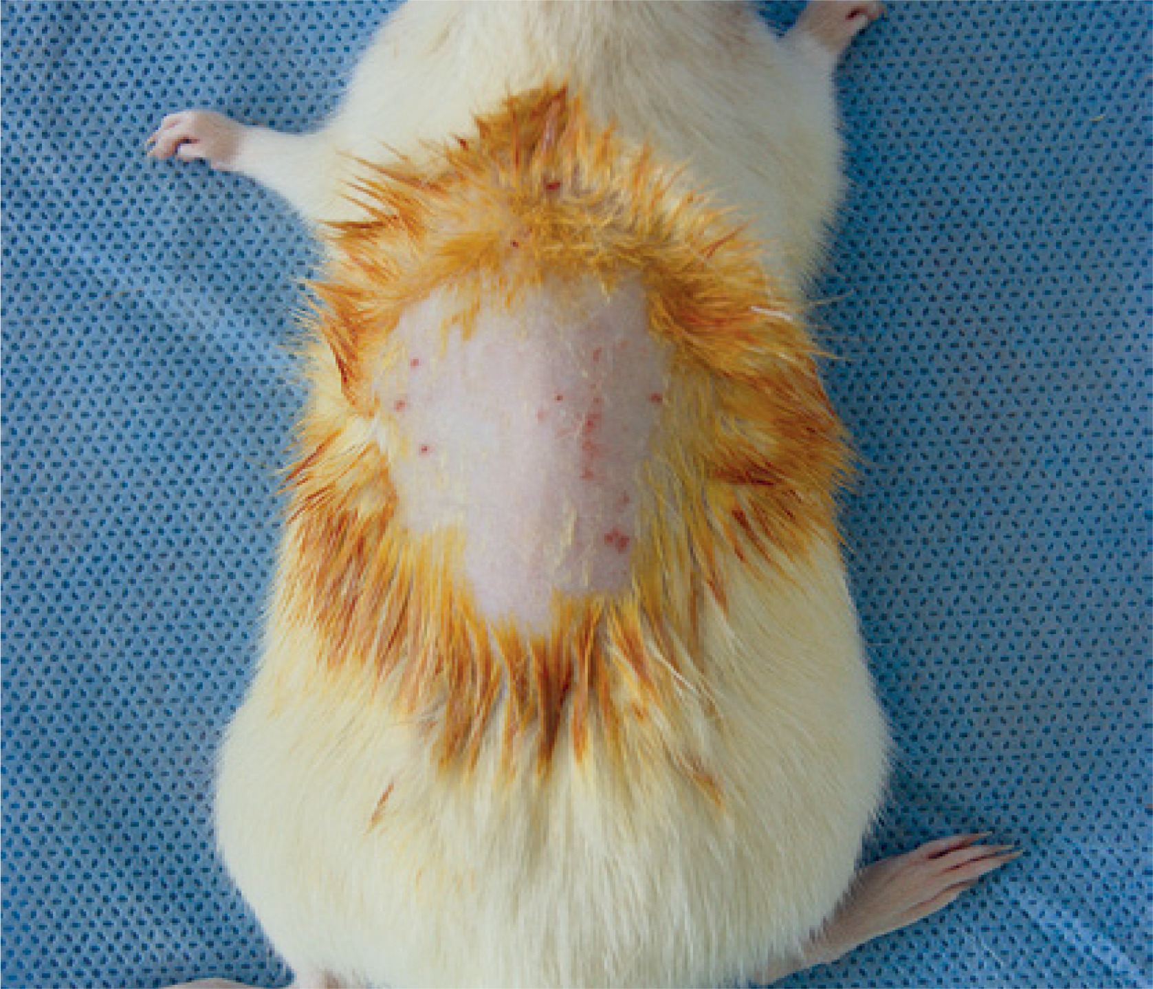2. For rats of this group, once partial skin burn had been caused using a metal signet ring, Eucerin cream was applied to the burnt surface.