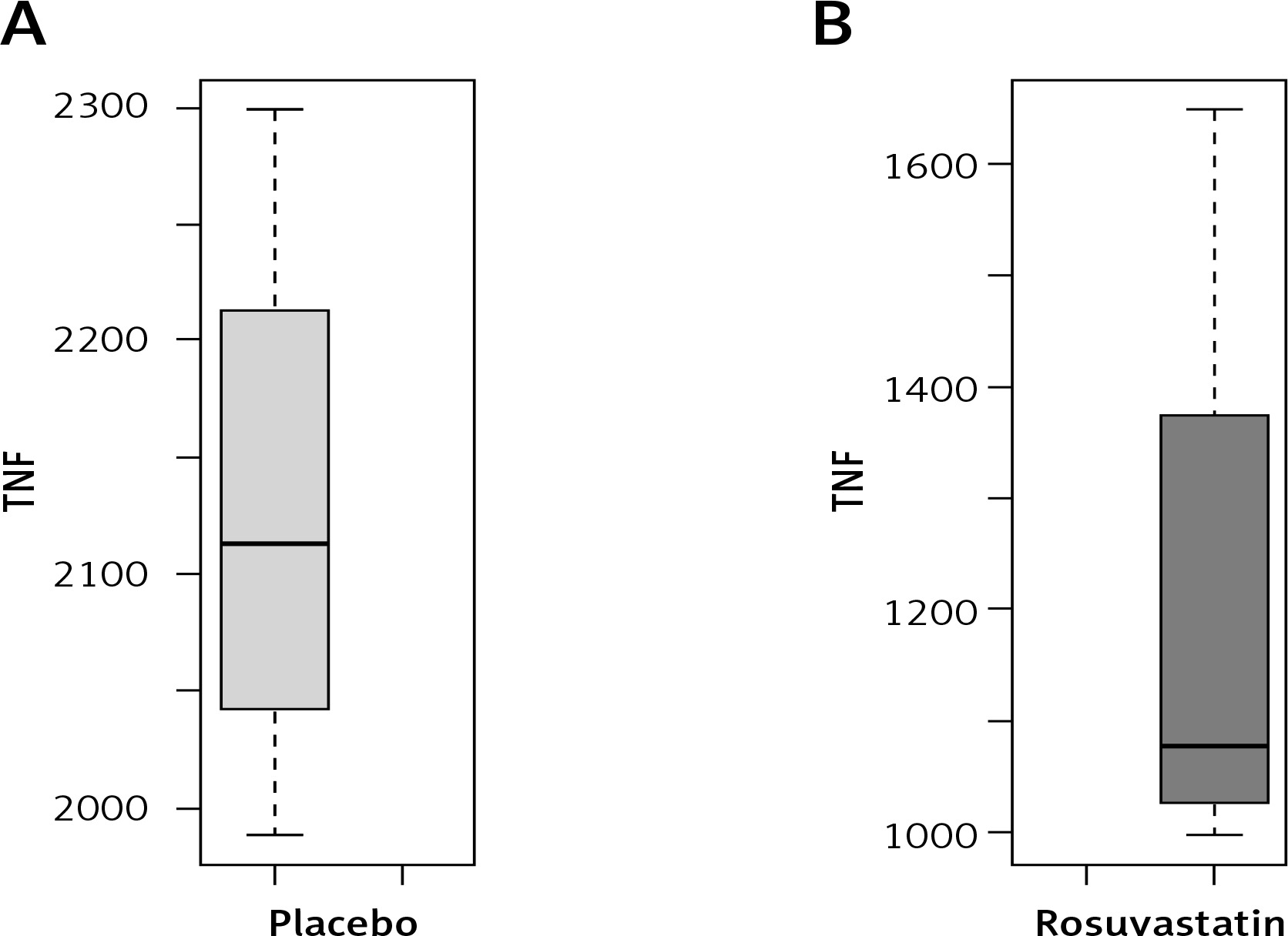 Summary measures of TNF-α levels in placebo- and rosuvastatin-treated rats