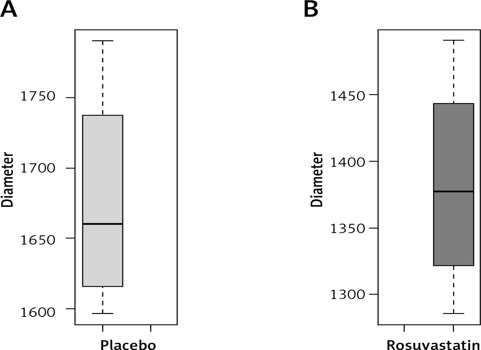 As we described before, the tests of normality we performed suggest that the data for the wound size in placebo- and rosuvastatin-treated groups are normally distributed (p > 0.05). Combining the information extracted from graphs, mean-median, and normality tests, the overall decision is in favor of normality for macroscopic assessment (Figures 9–11).