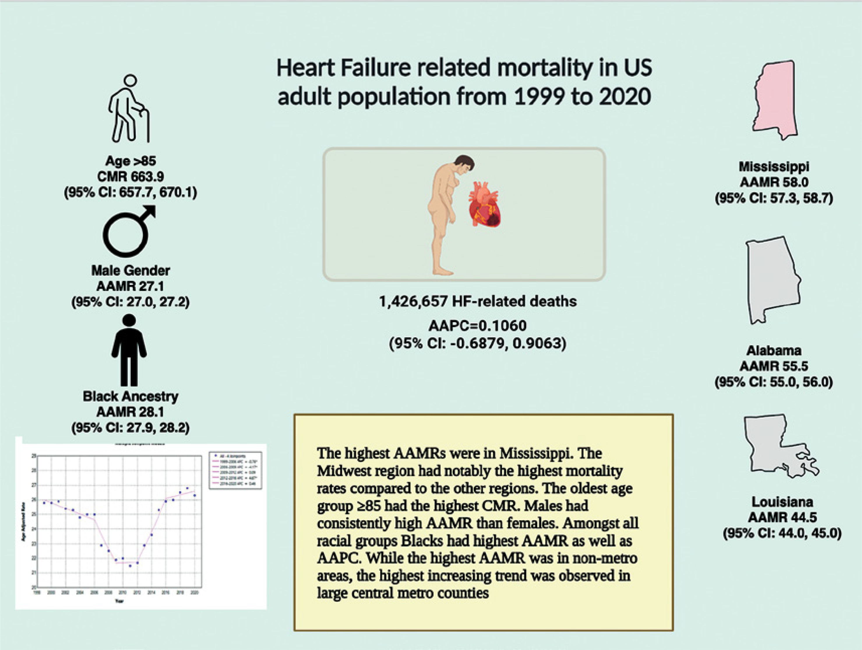 Central illustration of heart failure-related mortality in US adult population from 1999 to 2020